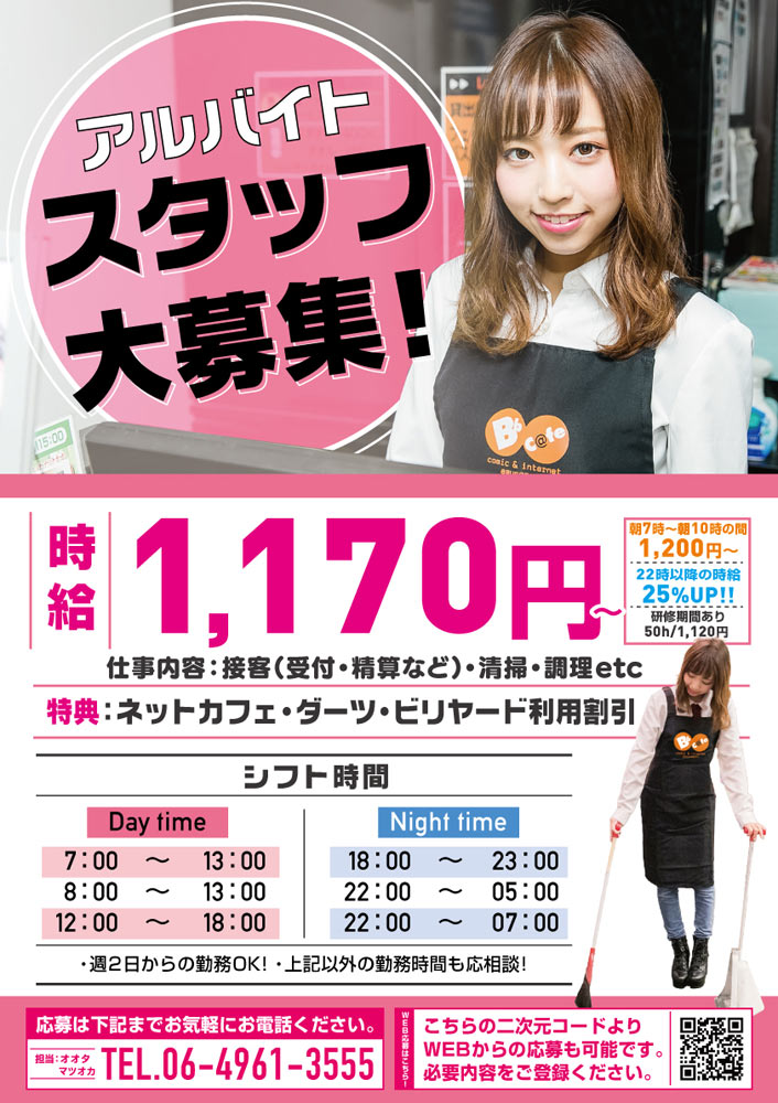 Bbカフェ名神尼崎店ではスタッフ(パート・アルバイト)を募集しております。
